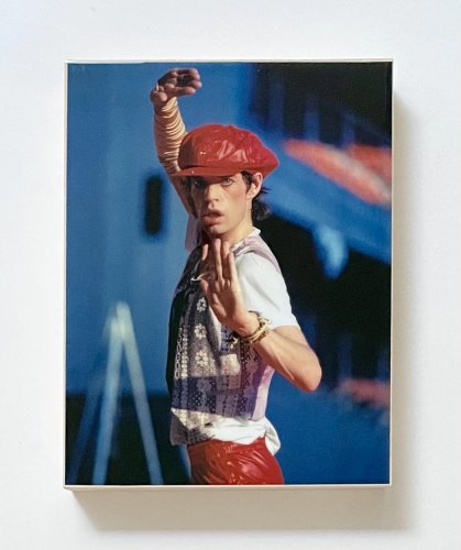Materials: Pink painted custom wood art board, magazine cutout, resin