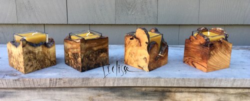 Maple and cherry burl and glass vases
