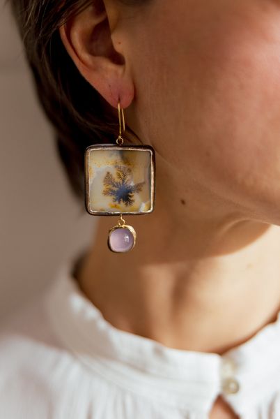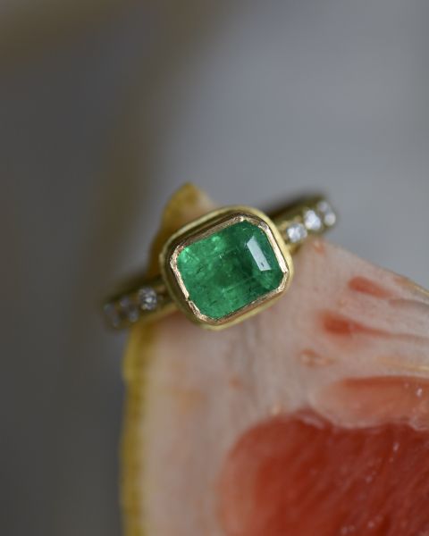 Lori Francescutti is a Canadian artist and jeweller from Haliburton, Ontario whose work bridges her background in painting with a deep connection to the natural world. She creates handcrafted pieces in high karat gold and silver, often centred around gemstones chosen for their character and imperfections. Lori approaches jewellery as wearable art, drawing inspiration from rugged landscapes, organic textures and the intuitive process of making. With no formal jewellery training, she taught herself goldsmithing and developed a signature style that is earthy, sculptural and quietly expressive.