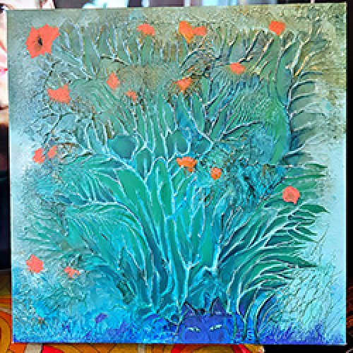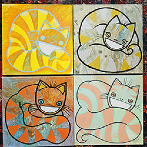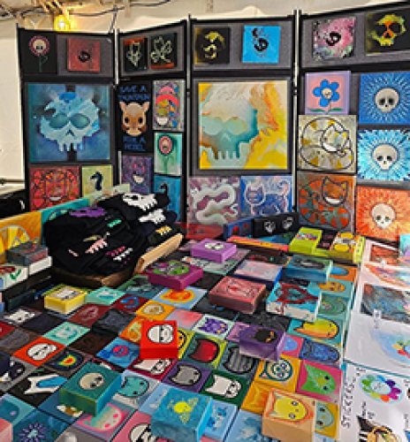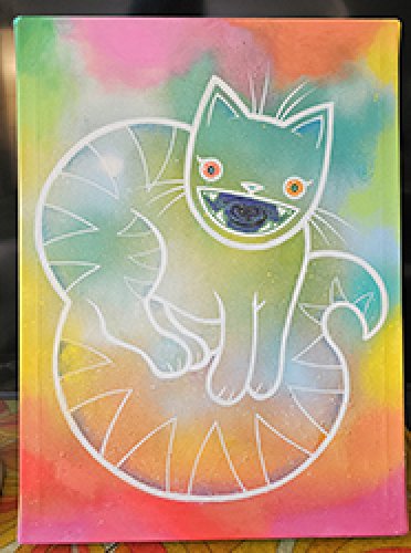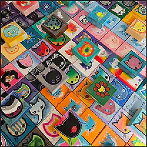 Joanne was born with a paint brush in one hand, and a cat toy in the other. When you find her booth, you will find cats and creatures, using bold and joyous colours, because a house without colour is boring. From Cheshire cats to Tree frogs, you'll find a piece that ignites the wonderment in your soul.