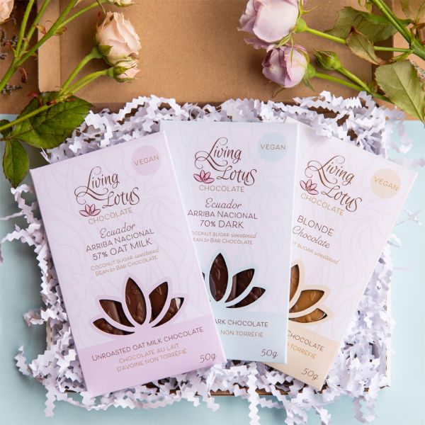 Living Lotus Chocolate based in Vancouver creates pure, kind, and beautiful bean to bar chocolate by ethically sourcing clean, cruelty-free ingredients for chocolate lovers seeking joy through the decadence of chocolate. Our organic, gluten-free, vegan, and refined sugar-free chocolate is exquisitely hand-crafted using fine flavour cacao beans.