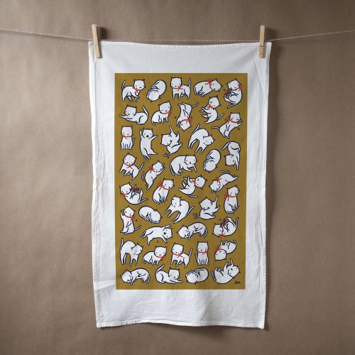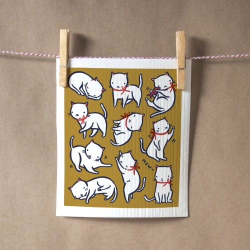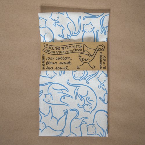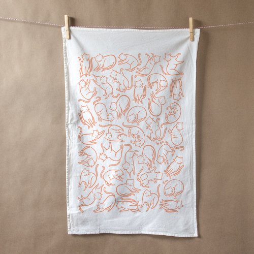 A super absorbent, quick drying tea towel. The more you wash and dry the better this towel works! Hand silk screened with water based ink. Due to popularity these happy cats come in a new colour every year. 2017 is the year of green!
