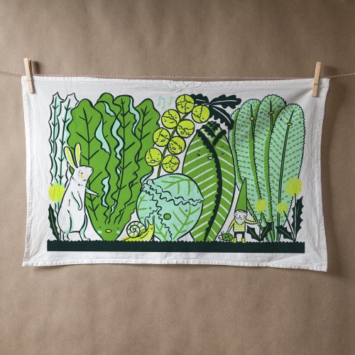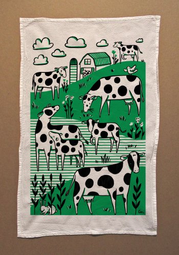 A super absorbent, quick drying tea towel. The more you wash and dry the better this towel works! Hand silk screened with water based ink in green and brown.