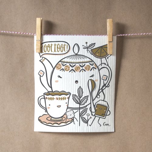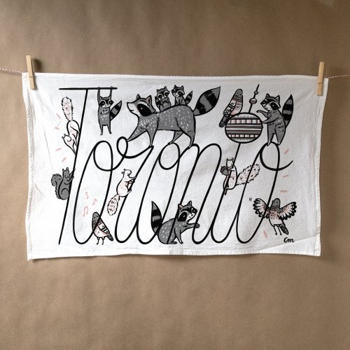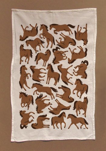 A super absorbent, quick drying tea towel. The more you wash and dry the better this towel works! Hand silk screened with water based ink in coral red and saddle brown.