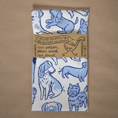 A super absorbent, quick drying tea towel. The more you wash and dry the better this towel works! Hand silk screened with water based ink in light blue and blue.