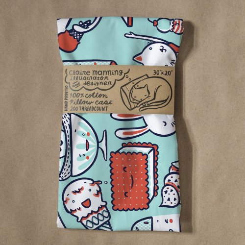 We all scream for ice cream, am I right? This pillow case will fit on any standard size bed pillow. Hand silk screened with water based ink in aqua, coral red and navy.