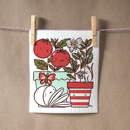 A super absorbent, quick drying tea towel. The more you wash and dry the better this towel works! Hand silk screened with water based ink in seafoam, red and hunter green.
