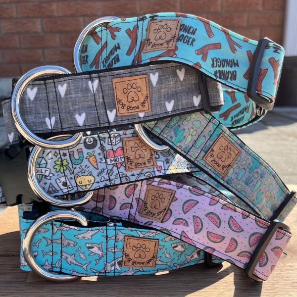 My name is Karen, the maker and creator behind dog gone gear. Alongside my dog and model Clark, we handmake dog collars, bandanas and bow ties, as well as custom designed and individually created shirts for dog lovers. Every single item is made by me in our Stouffville, Ontario home.